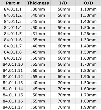 Refills sold in thickness x inside diameter combinations, see chart below for dimensions.