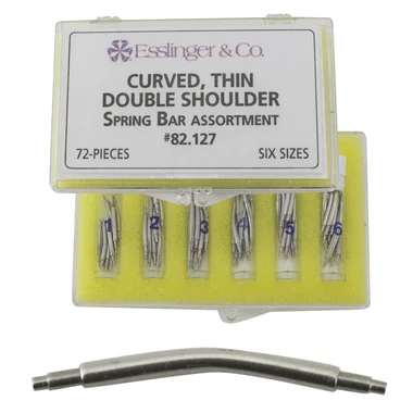 This assortment of curved spring bars contains 1.50 mm diameter spring bars in 6 different lengths.Â