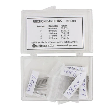 This stainless steel watch band pressure fit pin link assortment is great for watchmakers because it contains different diameter friction pins that can be trimmed to fit any length watch link allowing you to replace almost every kind of friction pin that you may encounter when working on metal watch links. These friction pins are a great thing to have around your workbench because they come in both heavy and light stamped styles to work in all types of watch bands and extend the life of your watch bands. You can use these pins to replace cotter pins and also to replace screw type link pins once the threaded pin hole has become stripped, allowing you to continue to use your favorite watch band.